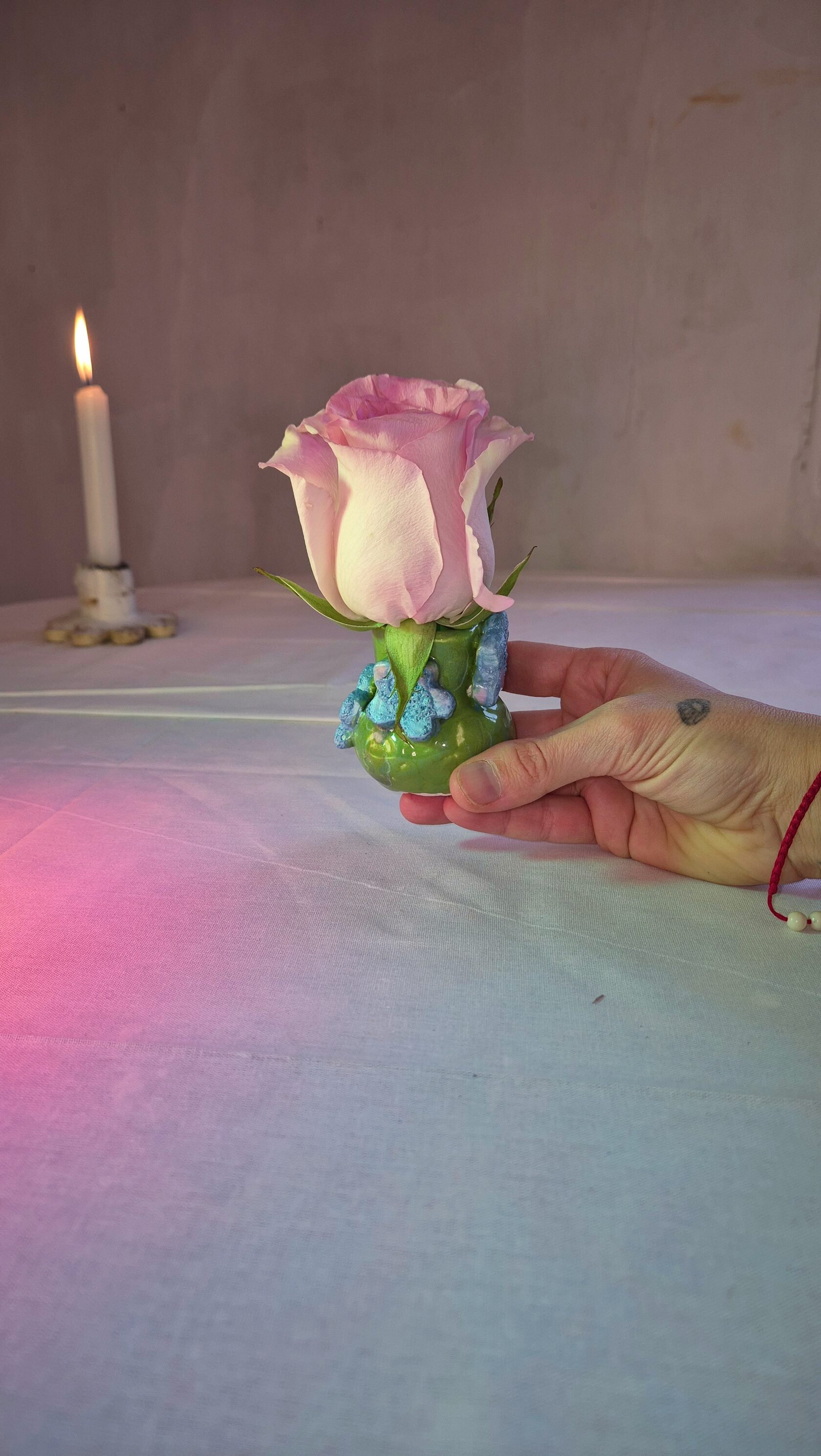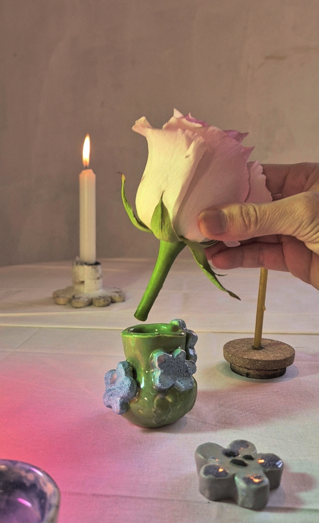 подсвечник голубая роза